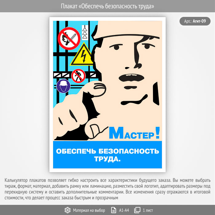 Плакат «Обеспечь безопасность труда» (Агит-09, 1 лист) в Твери купить