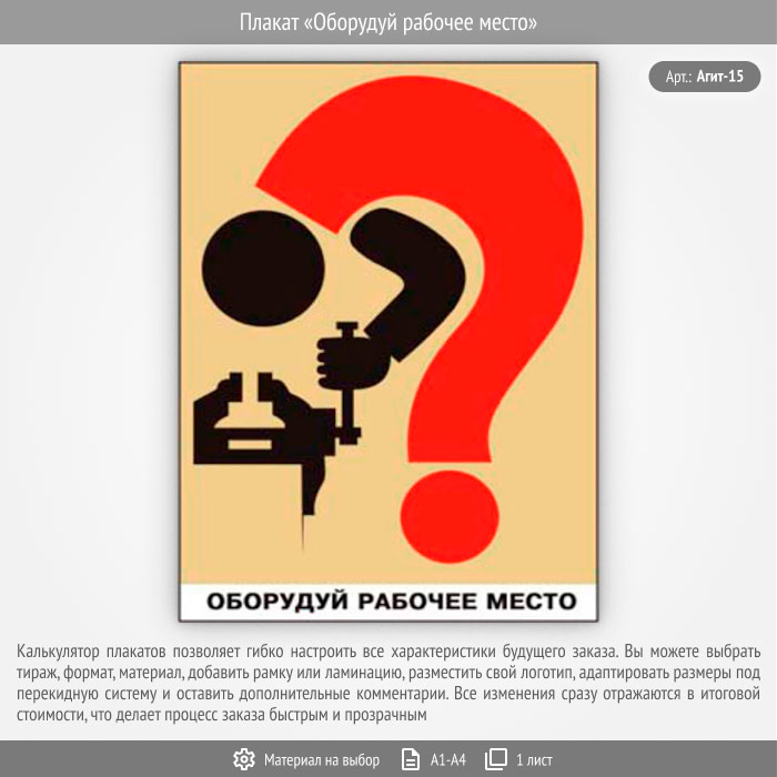 Плакат «Оборудуй рабочее место» (Агит-15, 1 лист) в Твери купить