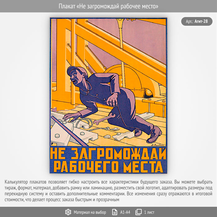 Плакат «Не загромождай рабочее место» (Агит-28, 1 лист) в Твери купить