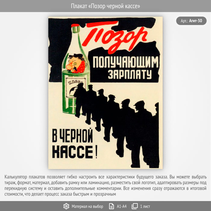 Плакат «Позор черной кассе» (Агит-30, 1 лист) в Твери купить