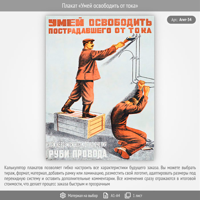 Плакат «Умей освободить от тока» (Агит-34, 1 лист) в Твери купить