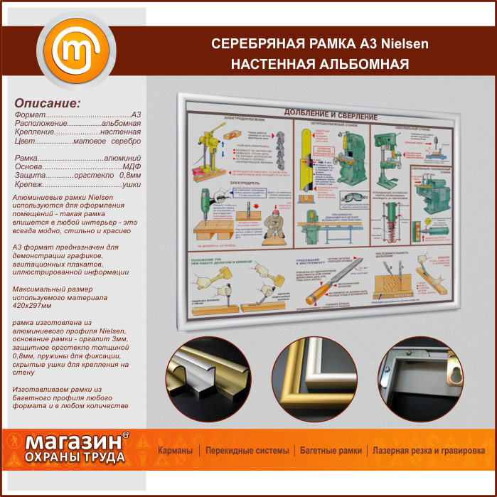 Багетная настенная рамка «Nielsen» А3 формата, альбомная, матовое серебро в Твери купить