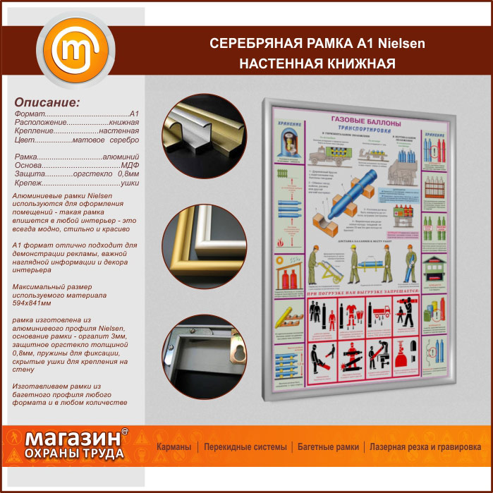 Багетная настенная рамка «Nielsen» А1 формата, книжная, матовое серебро в Твери купить