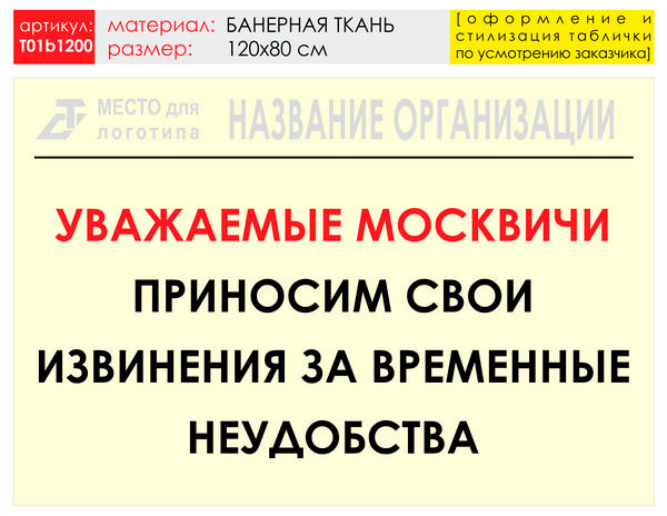 Баннер «Извинения», T01 (баннерная ткань, 120х90 см) в Твери купить
