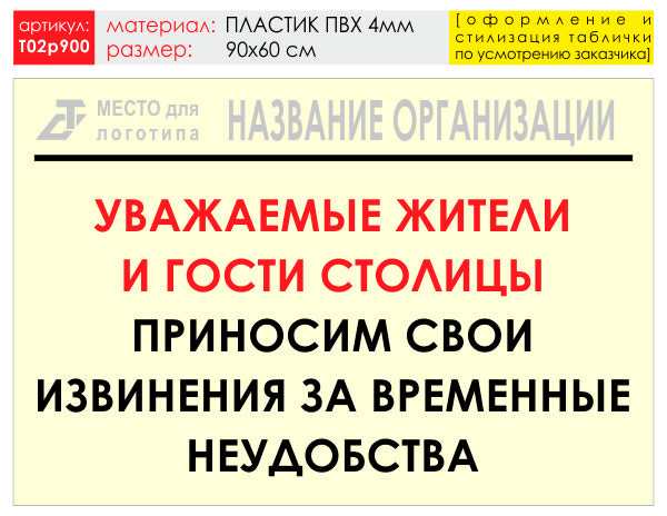 Баннер «Извинения», T02 (пластик 4 мм, 90х60 см) в Твери купить