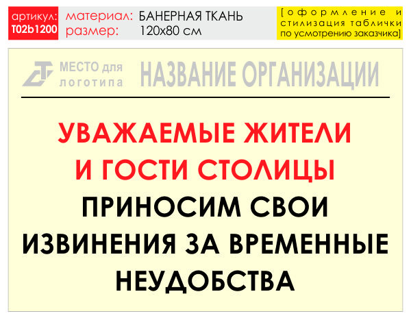 Баннер «Извинения», T02 (баннерная ткань, 120х90 см) в Твери купить