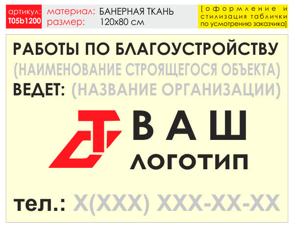 Баннер «Работы по благоустройству», T05 (баннерная ткань, 120х90 см) в Твери купить
