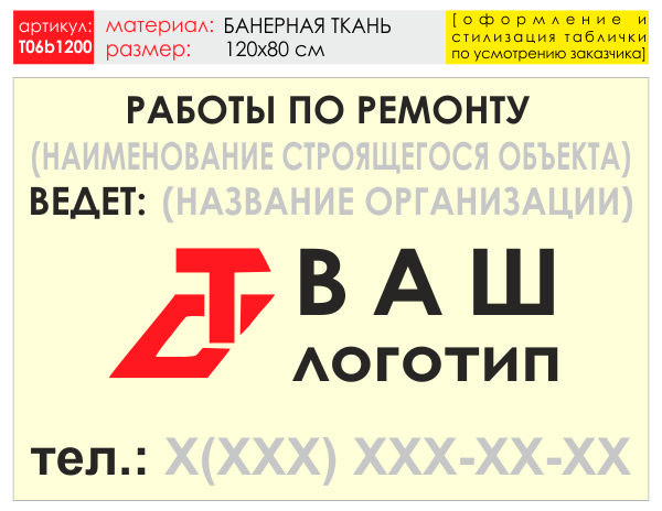 Баннер «Работы по ремонту», T06 (баннерная ткань, 120х90 см) в Твери купить