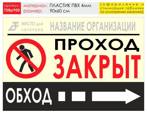 Баннер «Обход справа», T08 (пластик 4 мм, 90х60 см) в Твери купить