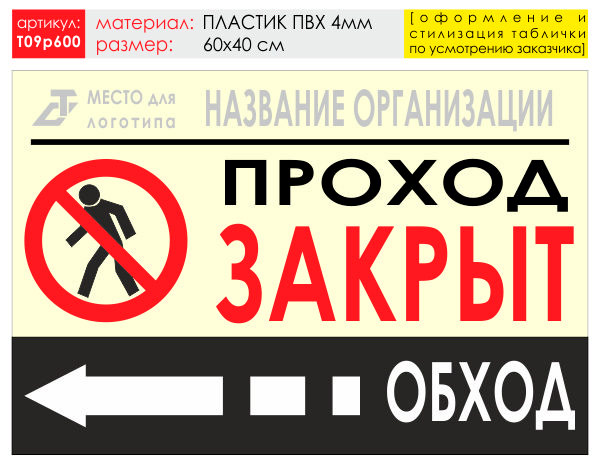Баннер «Обход слева», T09 (пластик 4 мм, 60х40 см) в Твери купить
