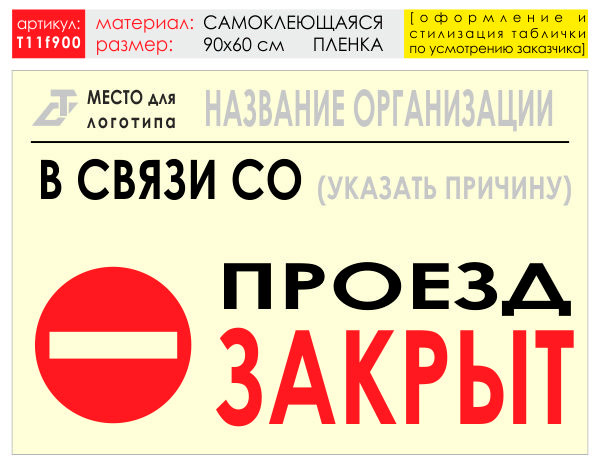 Баннер «Проезд закрыт», T11 (самоклеящаяся плёнка, 90х60 см) в Твери купить
