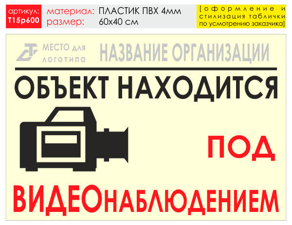 Баннер «Видеонаблюдение», T15 (пластик 4 мм, 60х40 см) в Твери купить