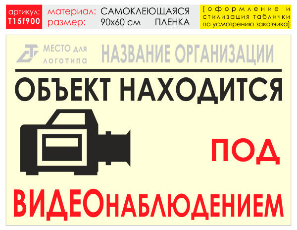 Баннер «Видеонаблюдение», T15 (самоклеящаяся плёнка, 90х60 см) в Твери купить