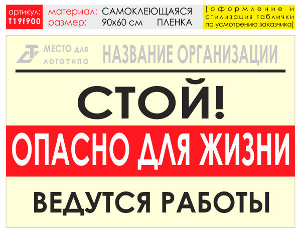 Баннер «Опасно для жизни», T19 (самоклеящаяся плёнка, 90х60 см) в Твери купить