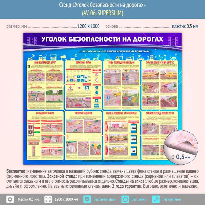 Стенд «Уголок безопасности на дорогах» (AV-06-SUPERSLIM) в Твери купить