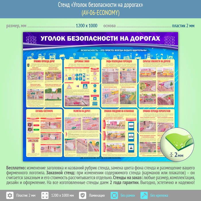 Стенд «Уголок безопасности на дорогах» (AV-06-ECONOMY) в Твери купить