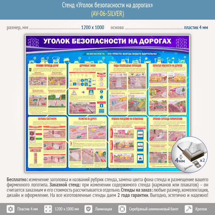 Стенд «Уголок безопасности на дорогах» (AV-06-SILVER) в Твери купить