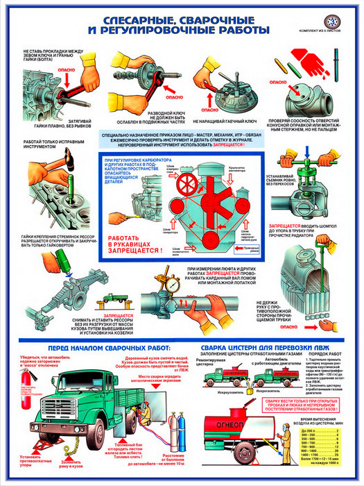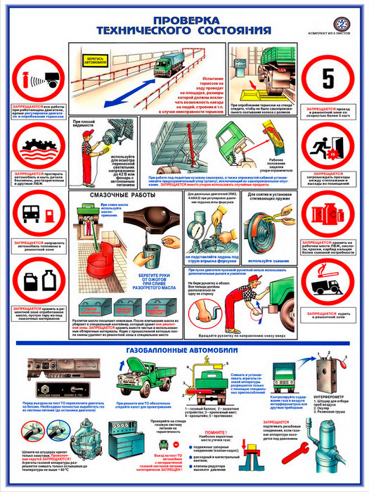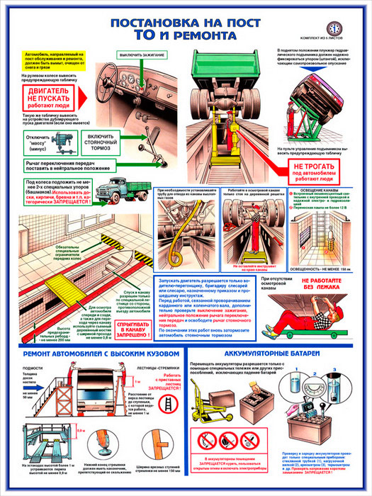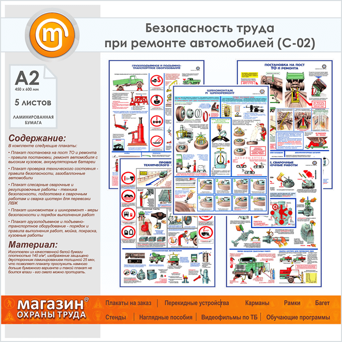 Плакат «Техника безопасности при ремонте автомобилей» (С-02, ламинированная бумага, А2, 5 листов) в Твери купить