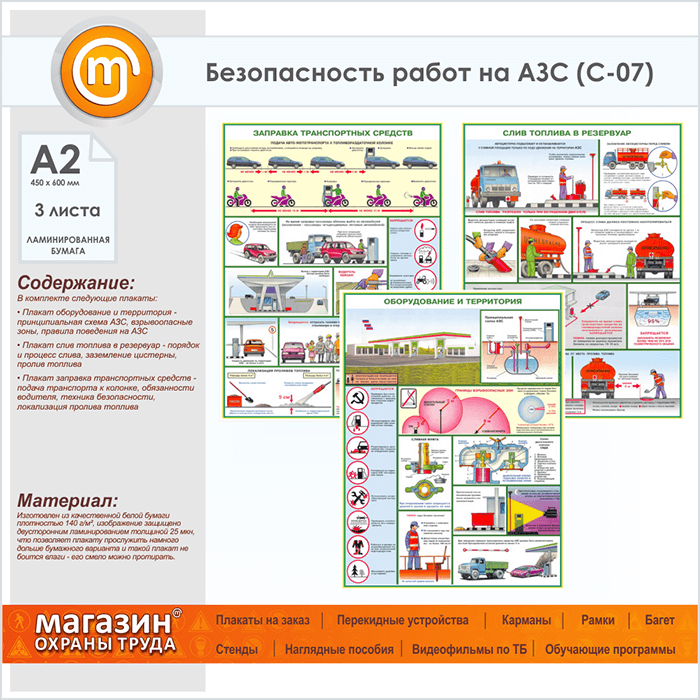 Плакаты «Безопасность работ на АЗС» (С-07, ламинированная бумага, А2, 3 листа) в Твери купить