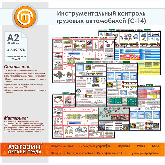 Плакаты «Инструментальный контроль грузовых автомобилей» (С-14, ламинированная бумага, А2, 5 листов) в Твери купить