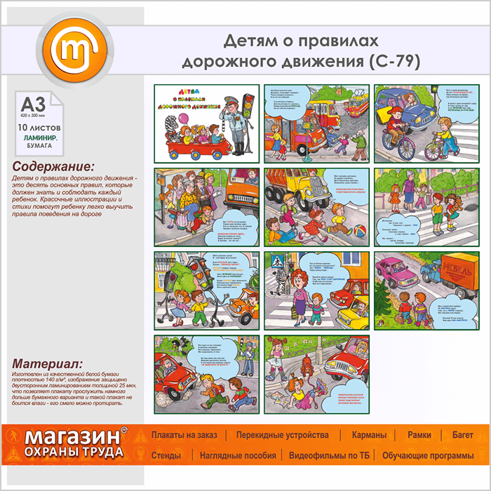 Плакаты «Детям о правилах дорожного движения» (С-79, ламинированная бумага, А3, 10 листов) в Твери купить