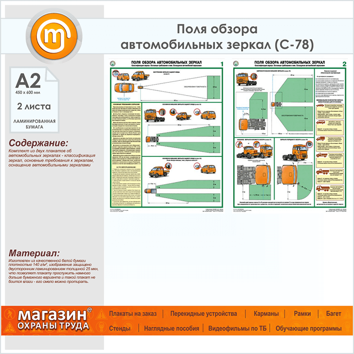 Плакаты «Поля обзора автомобильных зеркал» (С-78, ламинированная бумага, А2, 2 листа) в Твери купить