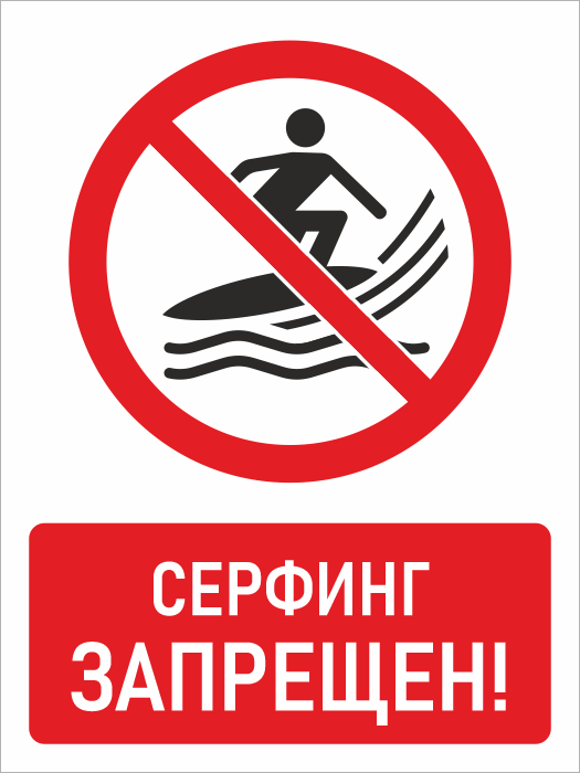 Знак «Серфинг запрещен!», БВ-24 (пластик 2 мм, 300х400 мм) в Твери купить