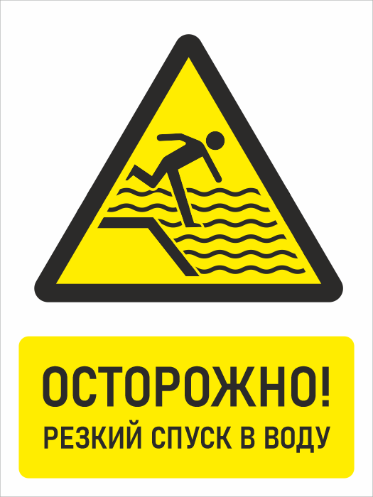 Знак «Осторожно! Резкий спуск в воду», БВ-32 (пластик 4 мм, 300х400 мм) в Твери купить