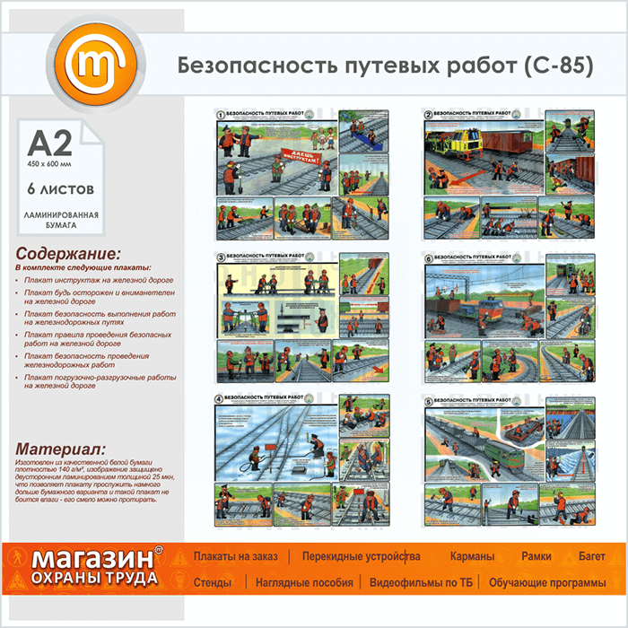 Плакаты «Безопасность путевых работ» (С-85, ламинированная бумага, А2, 6 листов) в Твери купить