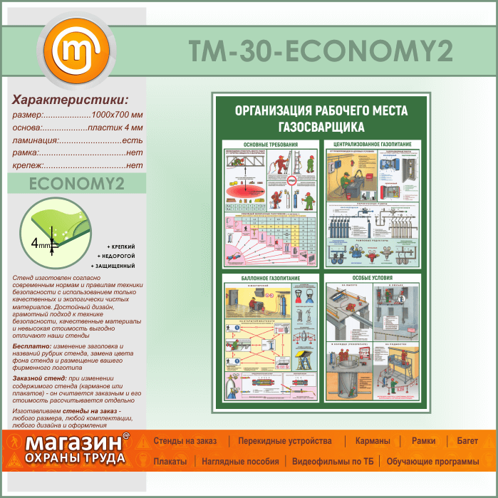 Стенд «Организация рабочего места газосварщика» (TM-30-ECONOMY2) в Твери купить