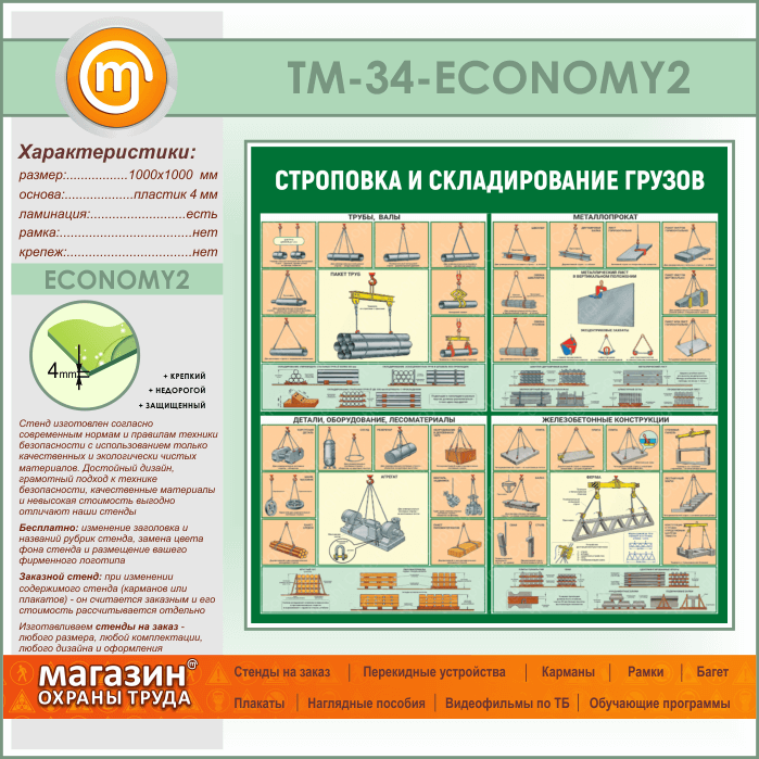 Стенд «Строповка и складирование грузов» (TM-34-ECONOMY2) в Твери купить
