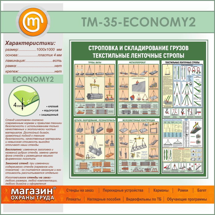 Стенд «Строповка и складирование грузов. Текстильные ленточные стропы» (TM-35-ECONOMY2) в Твери купить