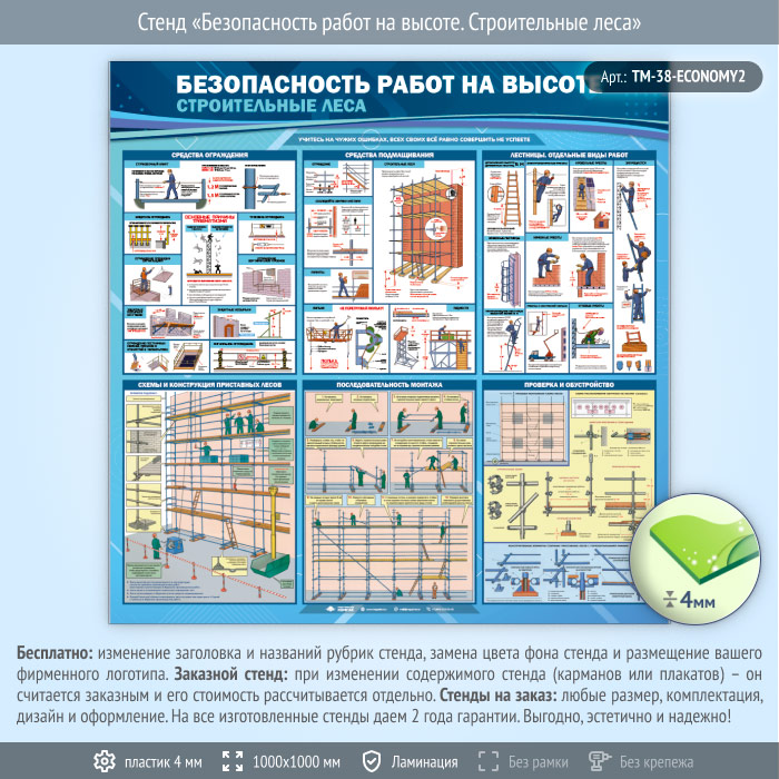 Стенд «Безопасность работ на высоте. Строительные леса» (TM-38-ECONOMY2) в Твери купить