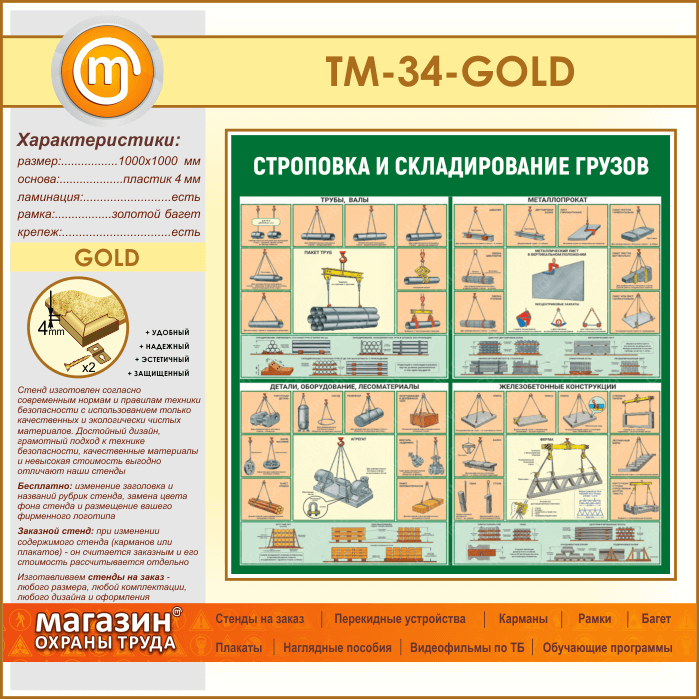 Стенд «Строповка и складирование грузов» (TM-34-GOLD) в Твери купить
