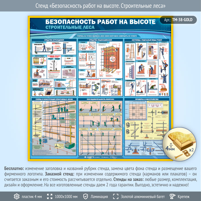 Стенд «Безопасность работ на высоте. Строительные леса» (TM-38-GOLD) в Твери купить