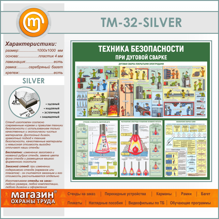 Стенд «Техника безопасности при дуговой сварке» (TM-32-SILVER) в Твери купить
