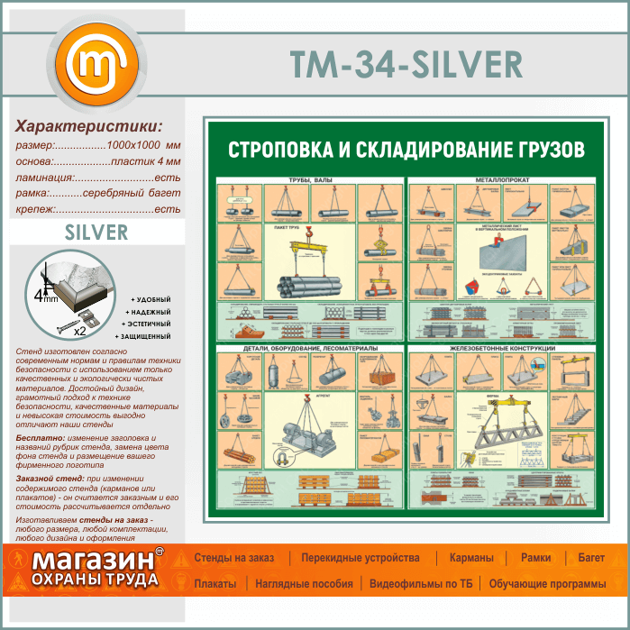 Стенд «Строповка и складирование грузов» (TM-34-SILVER) в Твери купить