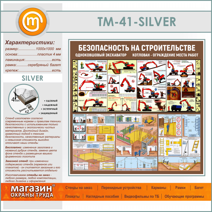 Стенд «Безопасность земляных работ. Экскаватор, котлован» (TM-41-SILVER) в Твери купить