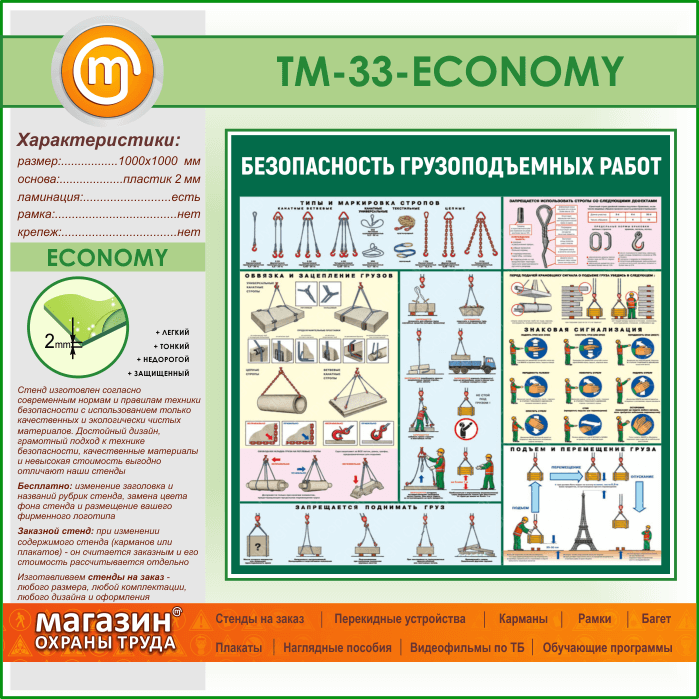 Стенд «Безопасность грузоподъемных работ» (TM-33-ECONOMY) в Твери купить