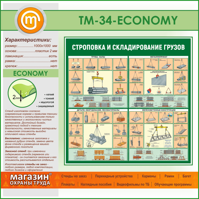 Стенд «Строповка и складирование грузов» (TM-34-ECONOMY) в Твери купить
