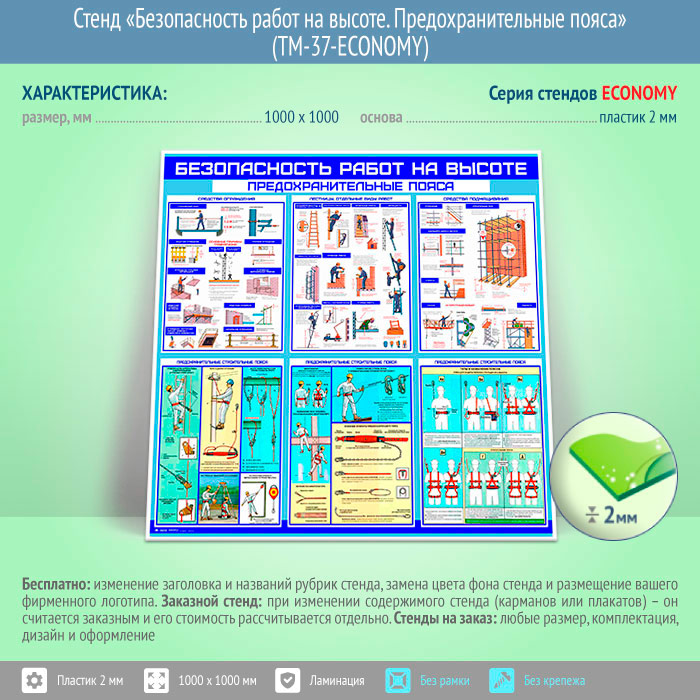 Стенд «Безопасность работ на высоте. Предохранительные пояса» (TM-37-ECONOMY) в Твери купить