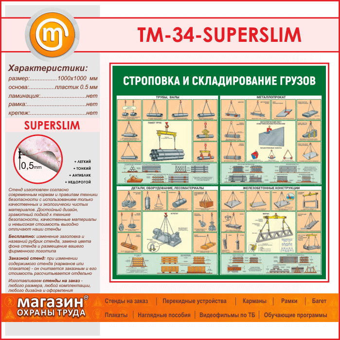 Стенд «Строповка и складирование грузов» (TM-34-SUPERSLIM) в Твери купить