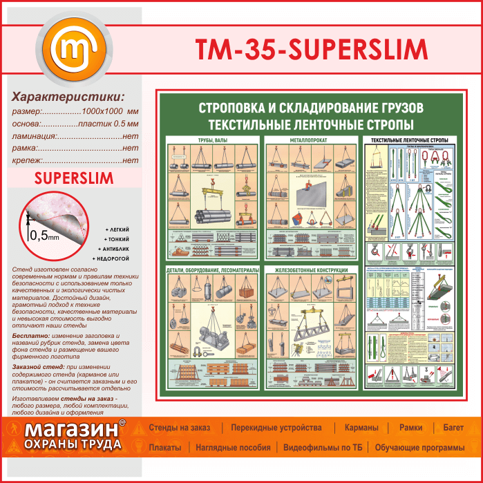 Стенд «Строповка и складирование грузов. Текстильные ленточные стропы» (TM-35-SUPERSLIM) в Твери купить