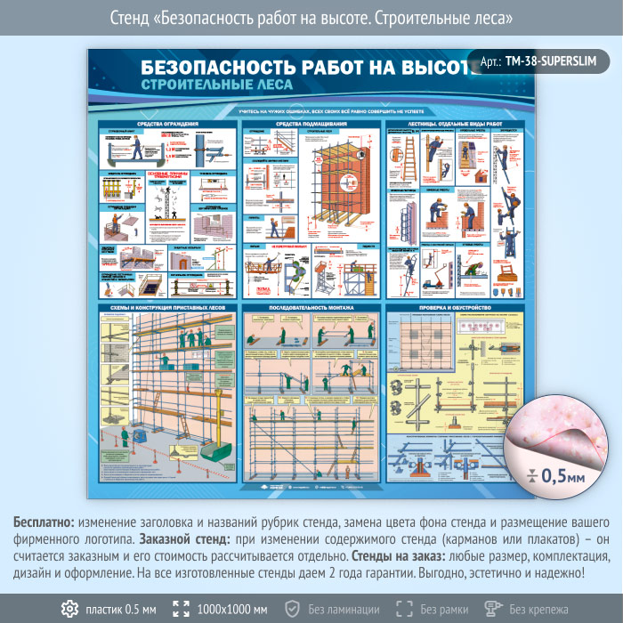 Стенд «Безопасность работ на высоте. Строительные леса» (TM-38-SUPERSLIM) в Твери купить