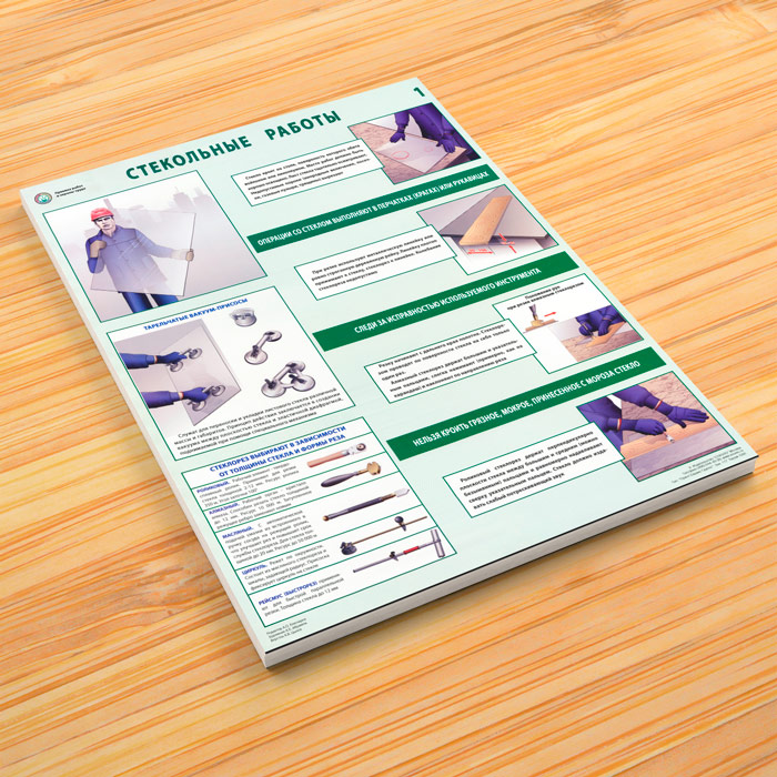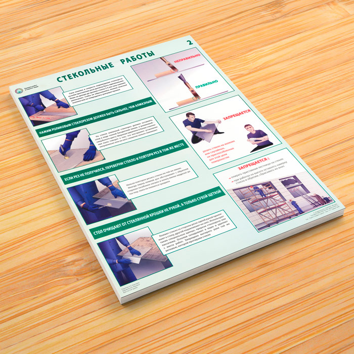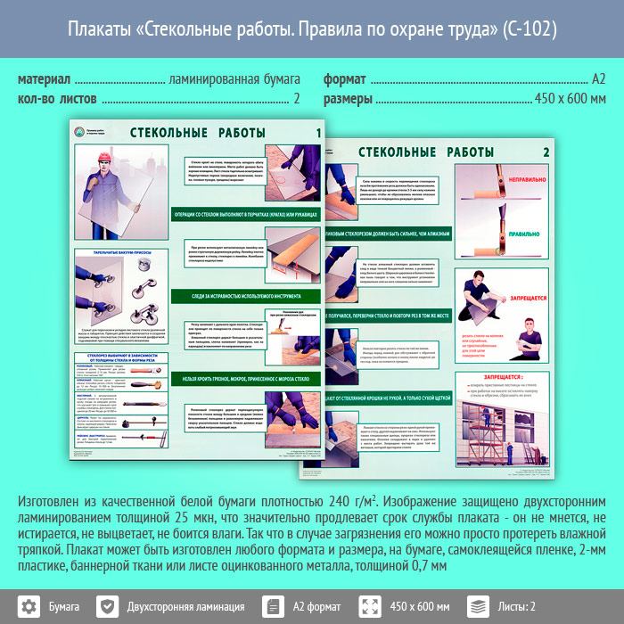 Плакаты «Стекольные работы. Правила по охране труда» (С-102, ламинированная бумага, А2, 2 листа) в Твери купить