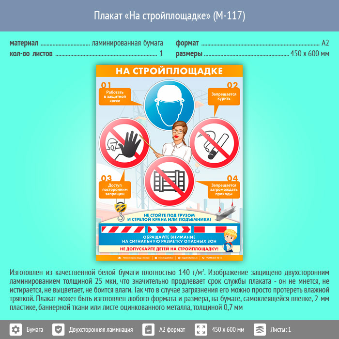 Плакат «На стройплощадке» (М-117, ламинированная бумага, А2, 1 лист) в Твери купить