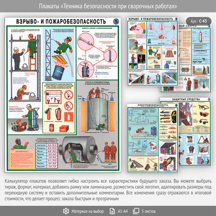 Плакаты «Техника безопасности при сварочных работах» (С-43, 5 листов) в Твери купить