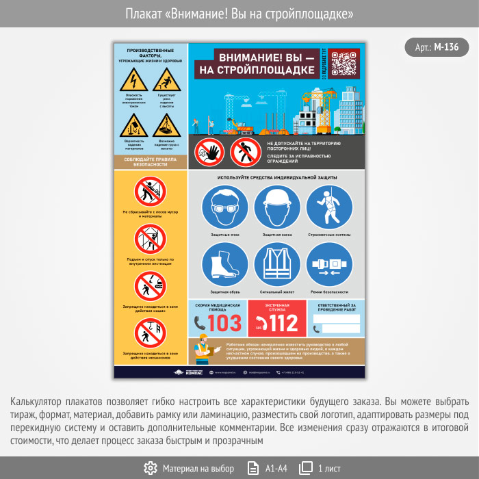 Плакат «Внимание! Вы на стройплощадке» с QR (М-136, 1 лист) в Твери купить
