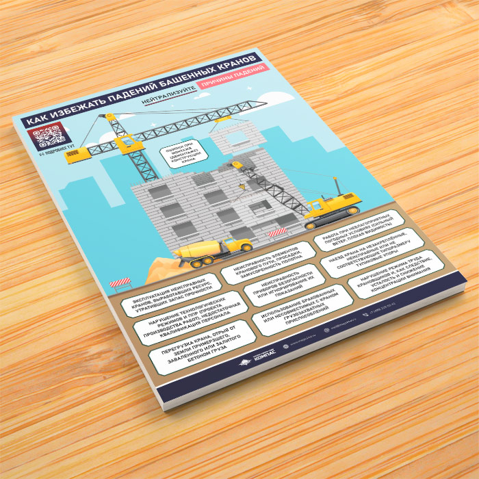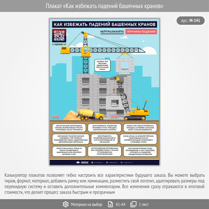 Плакат «Как избежать падений башенных кранов» с QR (М-141, 1 лист) в Твери купить