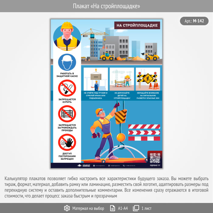 Плакат «На стройплощадке» с QR (М-142, 1 лист) в Твери купить